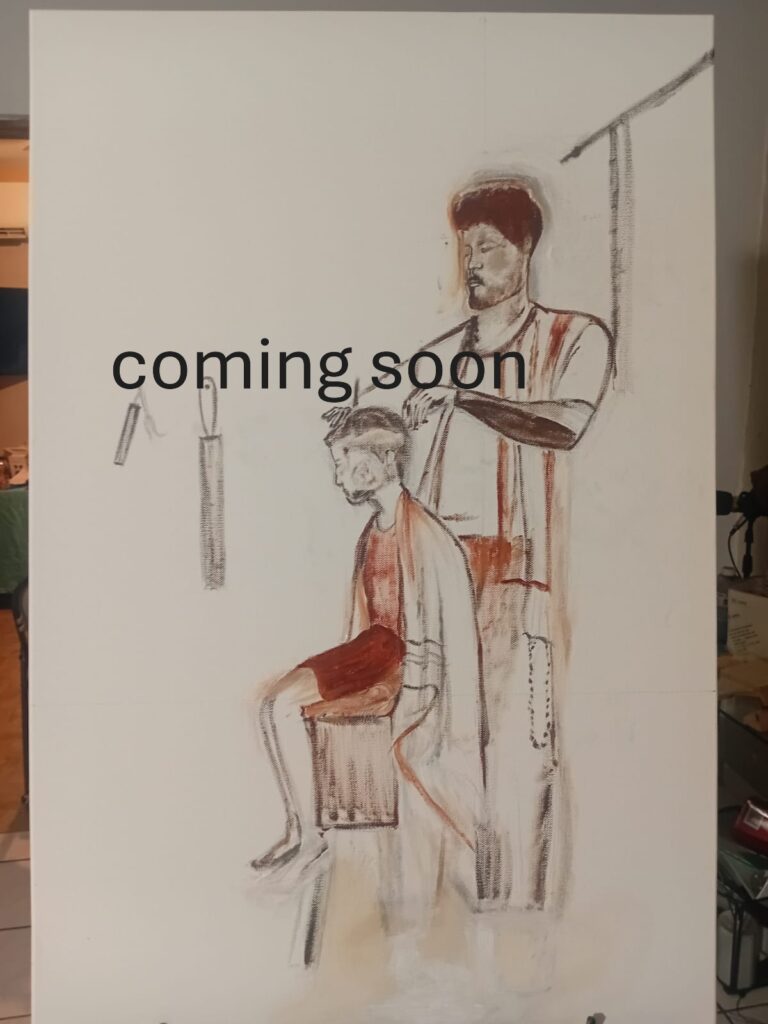 Esta obra entrelaza el legado de tres generaciones en una barbería impregnada por la luz del ocaso que se filtra por un gran ventanal. En el centro, el presente se manifiesta en la precisión del bisnieto barbero; a sus pies, el futuro encarna en la figura de un niño atento quien es el tataranieto que espera con ansia el ritual del final del corte. Elevado en la pared, el pasado observa: el retrato del abuelo, cuya mirada vigilante y orgullosa actúa como puente emocional entre los tres tiempos. La pintura es, en esencia, un tributo a la continuidad y la conexión invisible entre ancestros y descendientes en nuestra cultura.